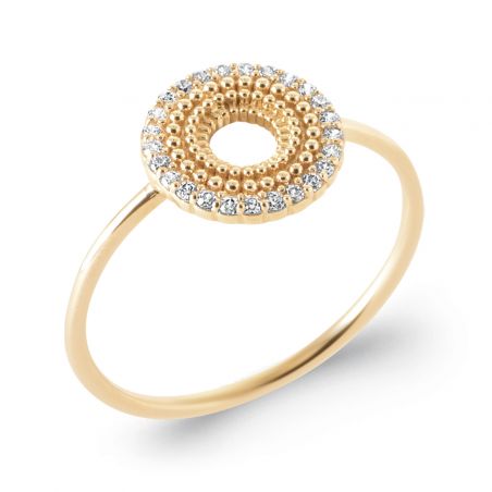 Laissez-vous séduire par la bague Vortex en plaqué or 18 carats, une création lumineuse au design captivant. Son motif circulaire finement texturé évoque un mouvement en spirale, symbolisant l’énergie et l’harmonie.