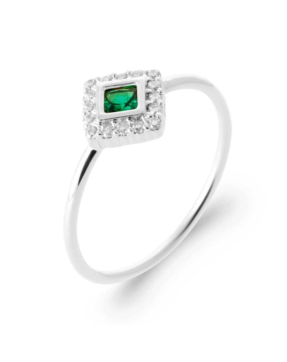 Bague en argent 925 avec pierre verte carrée et oxydes de zirconium