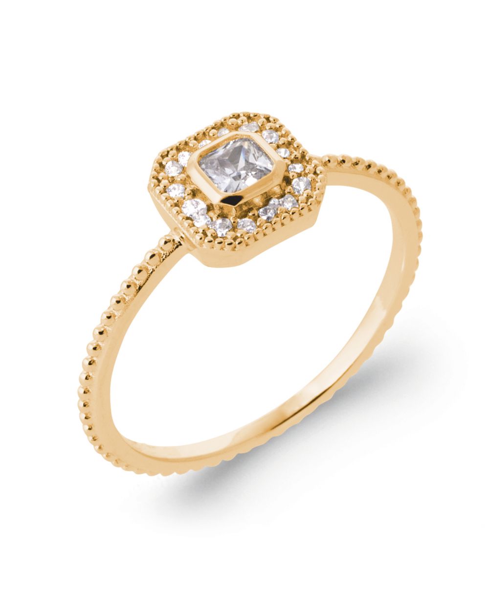 Bague plaqué or 18k zirconium carré – Élégance intemporelle