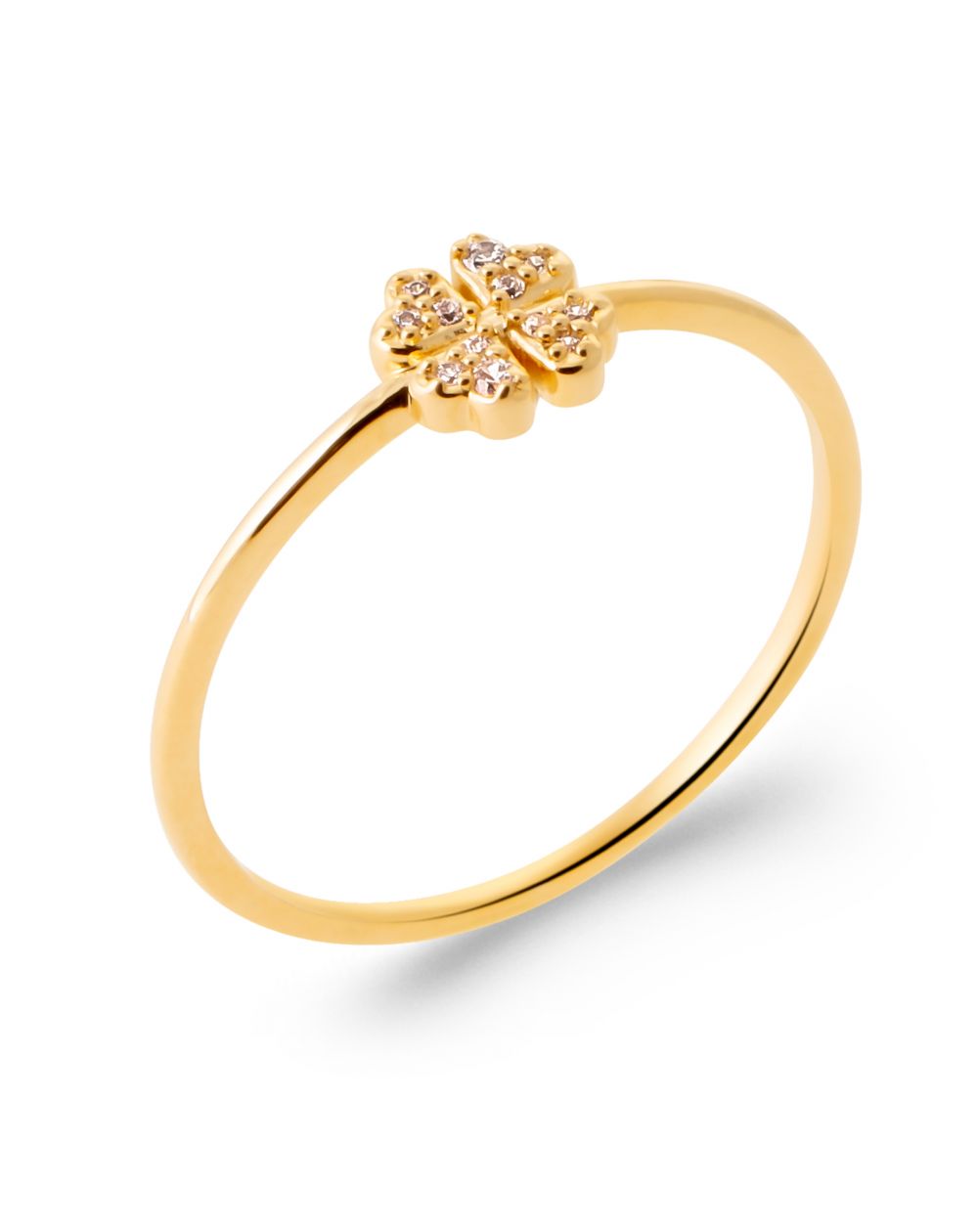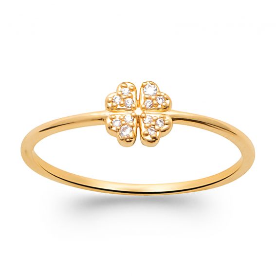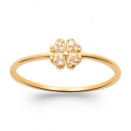 Bague trèfle porte-bonheur en plaqué or 18k et zirconium – Bijou chance femme