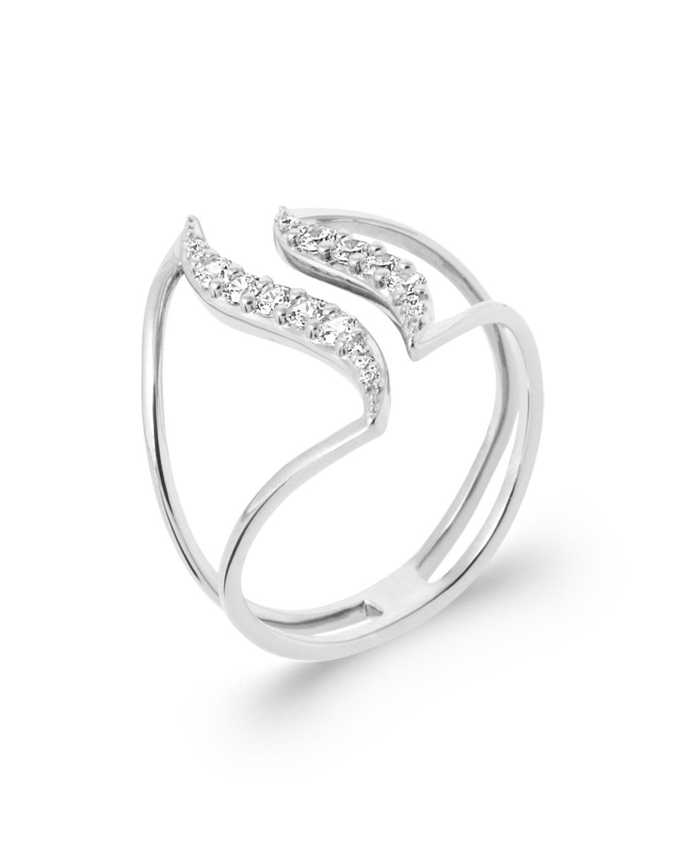 Ses lignes courbes, évoquant des feuilles délicatement dessinées, enveloppent le doigt avec légèreté et élégance.
