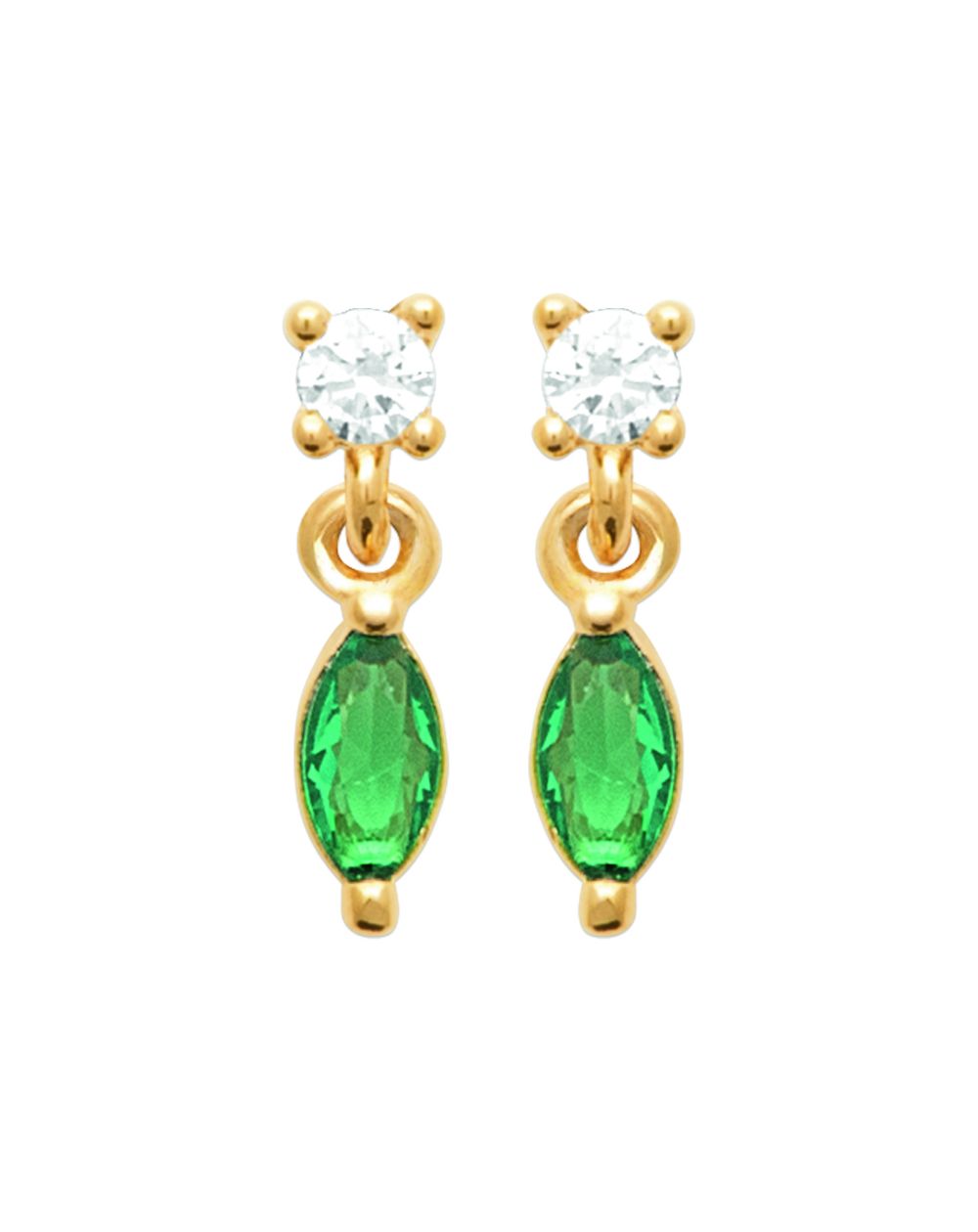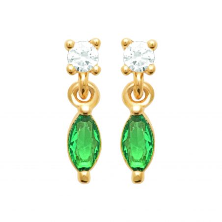 Élégantes et lumineuses, les boucles d’oreilles ÉMERA subliment le visage avec une touche de couleur intense et raffinée. Leur design associe un zircon blanc scintillant en partie haute à une pierre ovale verte facettée, suspendue avec délicatesse.