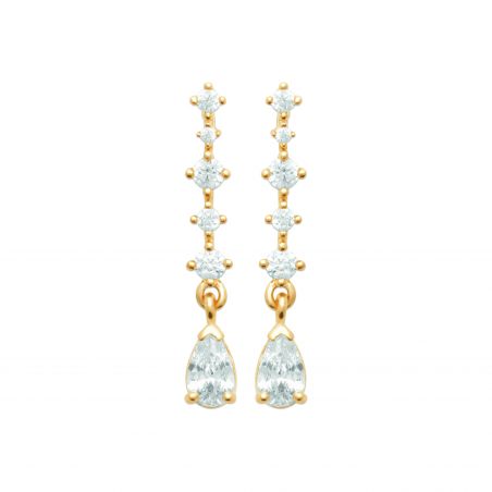 Sublimez votre allure avec les boucles d’oreilles Élégance Alya en plaqué or, une création raffinée au design élancé et lumineux. Composées d’une délicate ligne de zirconiums scintillants se prolongeant par une pierre en forme de goutte, elles apportent une touche de glamour et de sophistication à votre style.