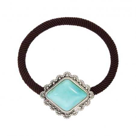 Hipanema imagine pour vous des accessoires de cheveux haut de gamme twistés du chic décalé fidèle à l’ADN de la marque. On retrouve ici un élastique de cheveux marron, avec un cabochon en métal argenté revisitant librement les codes Navajo, travaillé en losange avec ces arceaux tout autour. En son centre, une résine effet turquoise: pour parer vos cheveux de vos précieux.