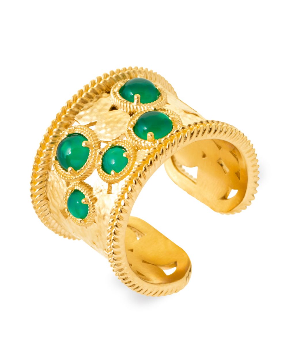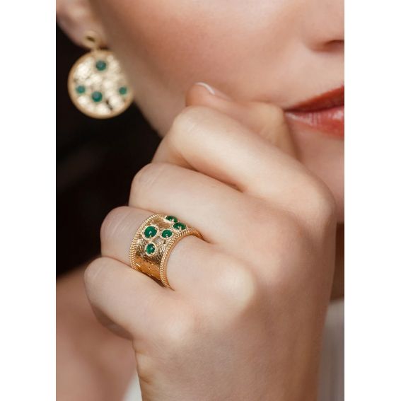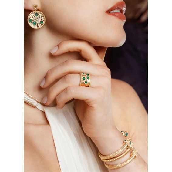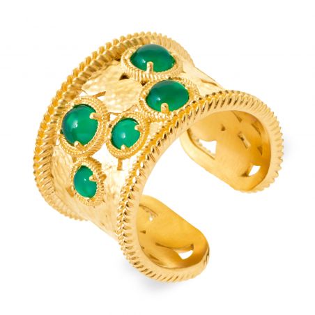 La bague GAÏA honore la déesse de la Terre avec une touche raffinée. Elle est sertie de pierres fines en Agate Verte naturelle, un symbole puissant de protection et de bien-être.