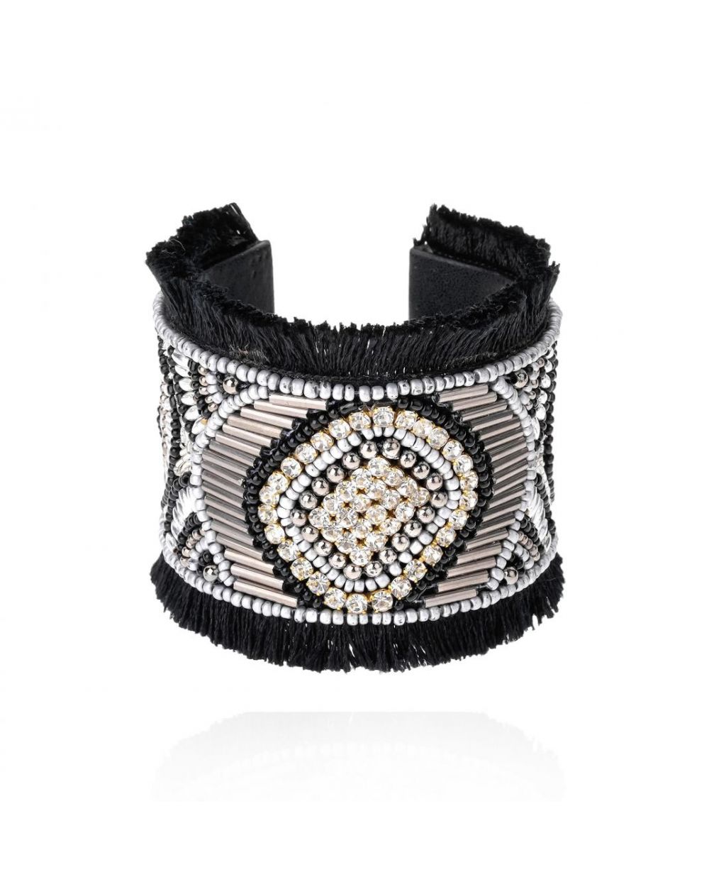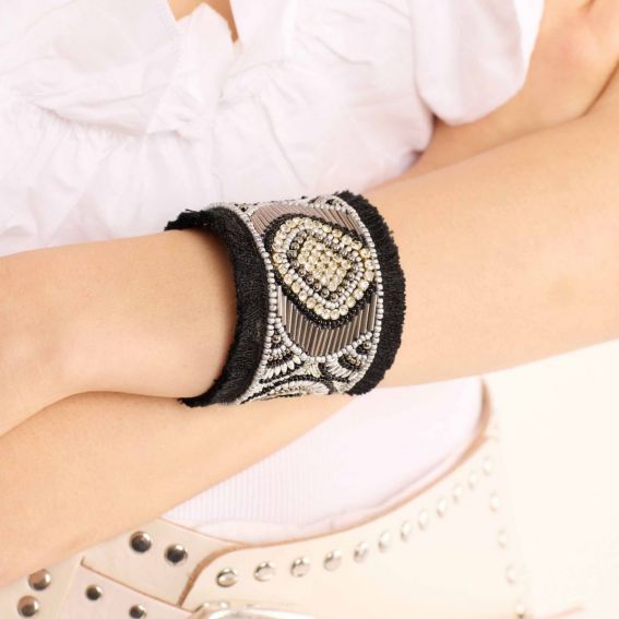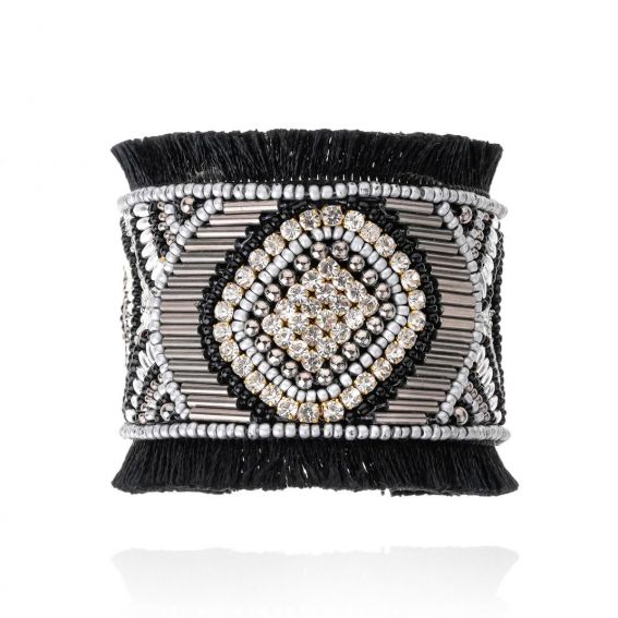 Quand l’exubérance néo-gothique rencontre l’ADN d’HIPANEMA, elle donne naissance à Luna, un bracelet au charme ténébreux et sophistiqué. Entièrement brodé de perles de verre noir onyx et gris hématite, il s’illumine de cristaux effet diamant dans un dessin somptueux. Mi-jonc, mi-manchette, il s’ouvre à l’arrière pour s’adapter à toutes les tailles, offrant un confort parfait. Une pièce iconique à porter sans modération.