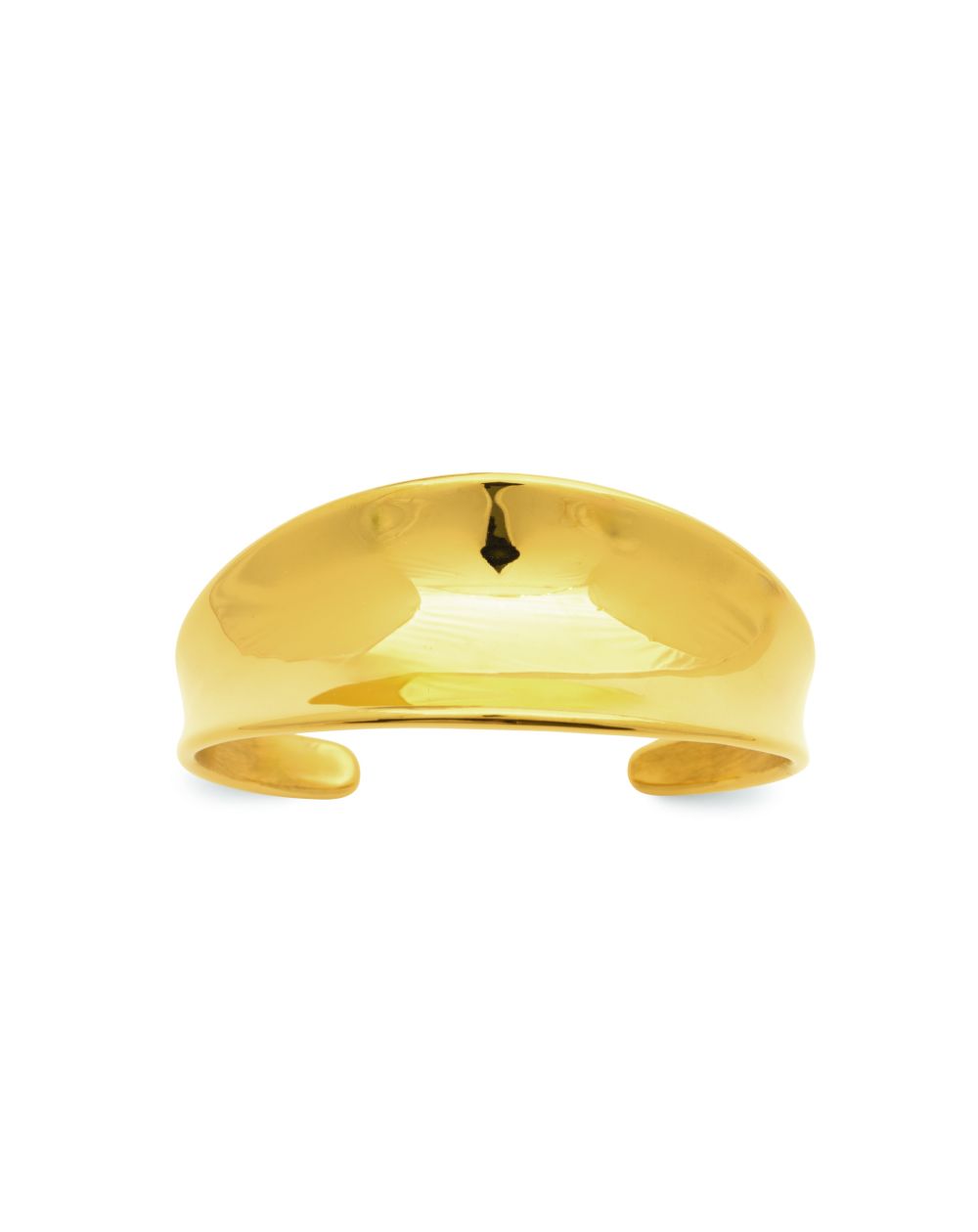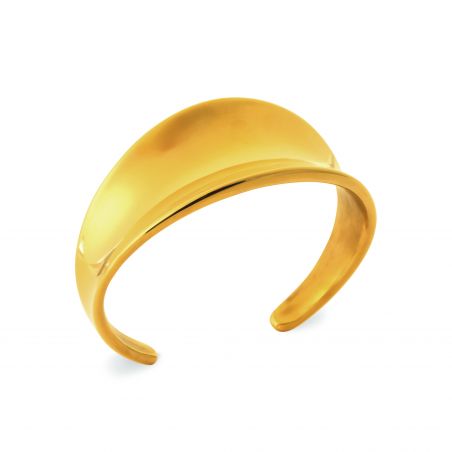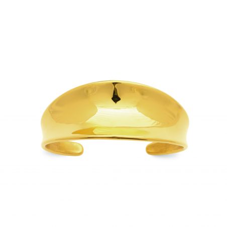 La manchette Lyra séduit par ses lignes larges et arrondies, subtilement galbées pour épouser le poignet avec douceur. Son éclat doré intense et sa finition miroir en font un bijou statement, minimaliste et résolument sophistiqué.