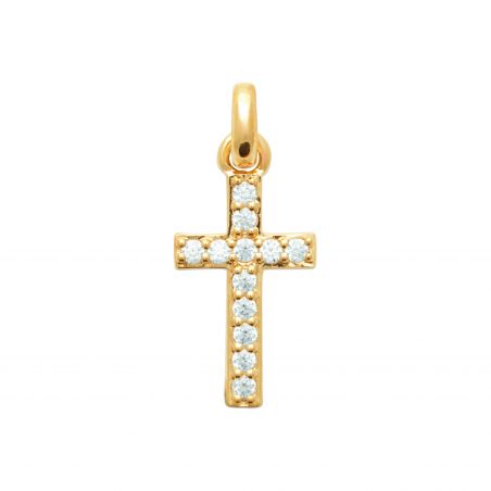 Pendentif croix empierrée 18mm plaqué or