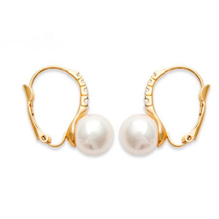 Boucles d'oreilles plaqué or 18k bic zirconium imit perle
