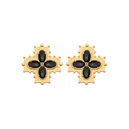 Boucle d'oreille croix noir agate