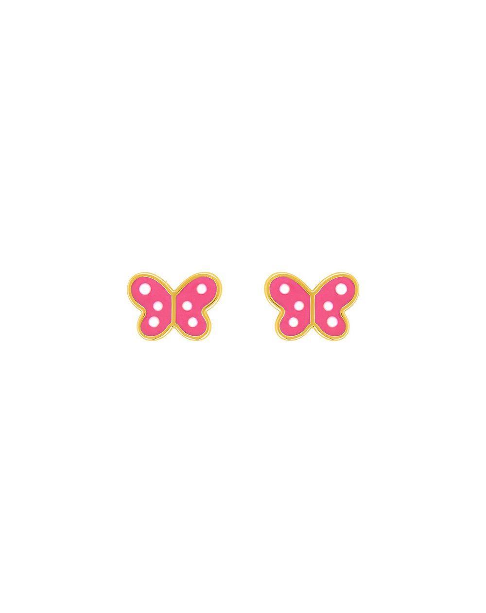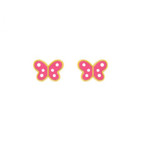 Ces boucles d'oreilles en or 9 carats sont des petits perceuses en forme de papillon émaillé rose.