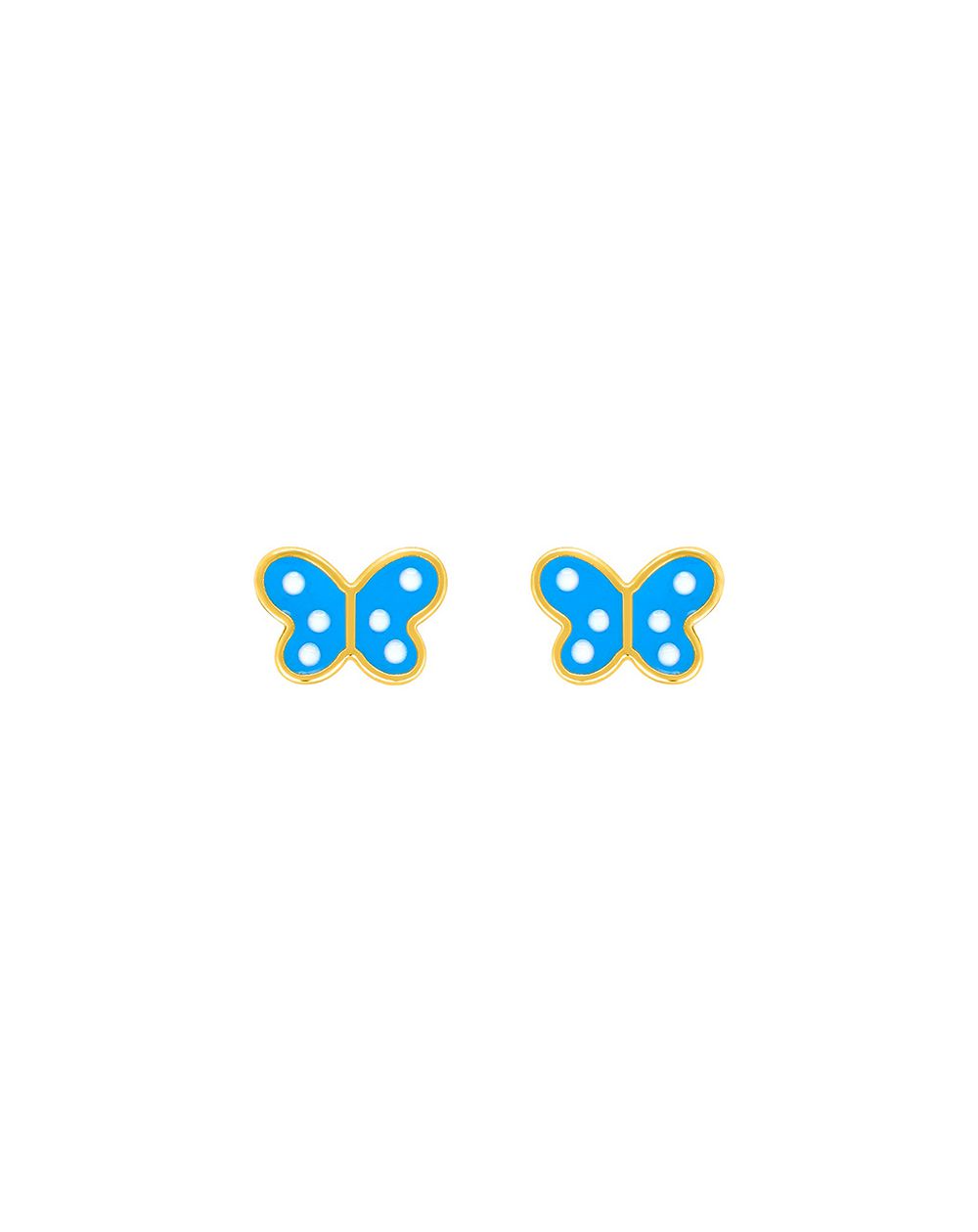 Ces boucles d'oreilles en or 9 carats sont des petits perceuses en forme de papillon émaillé bleu.