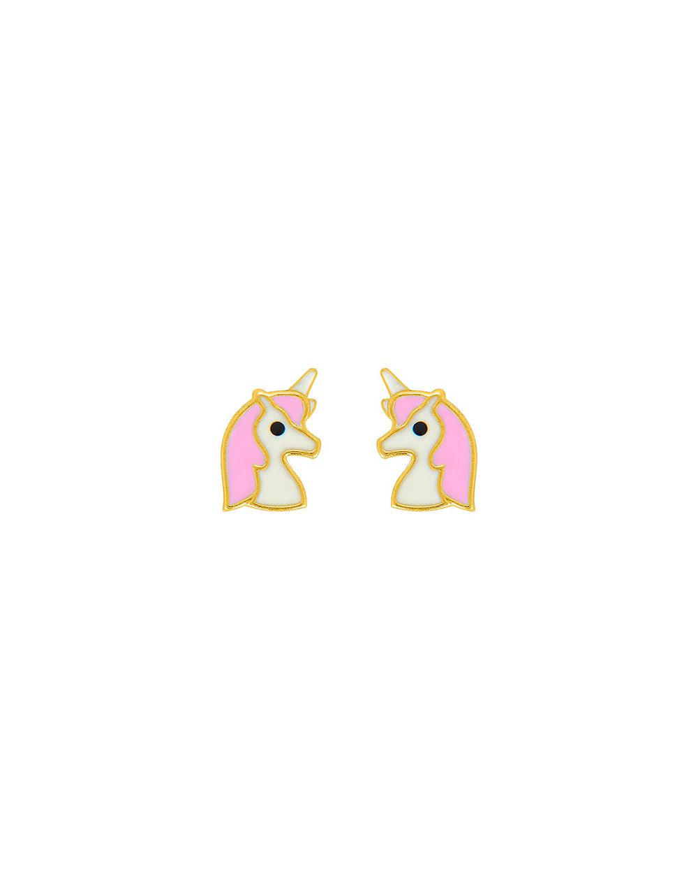Ces boucles d'oreilles en or 9 carats sont des petits perceuses en forme de licorne émaillée.