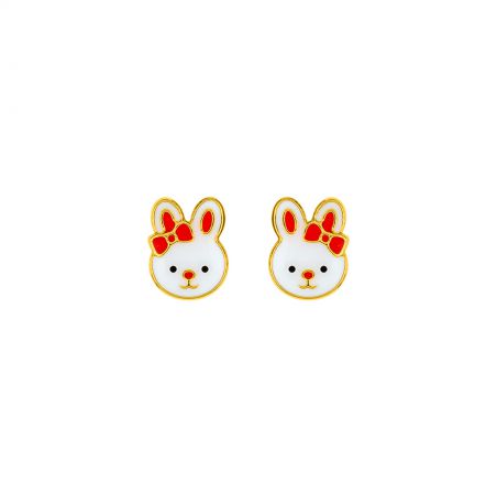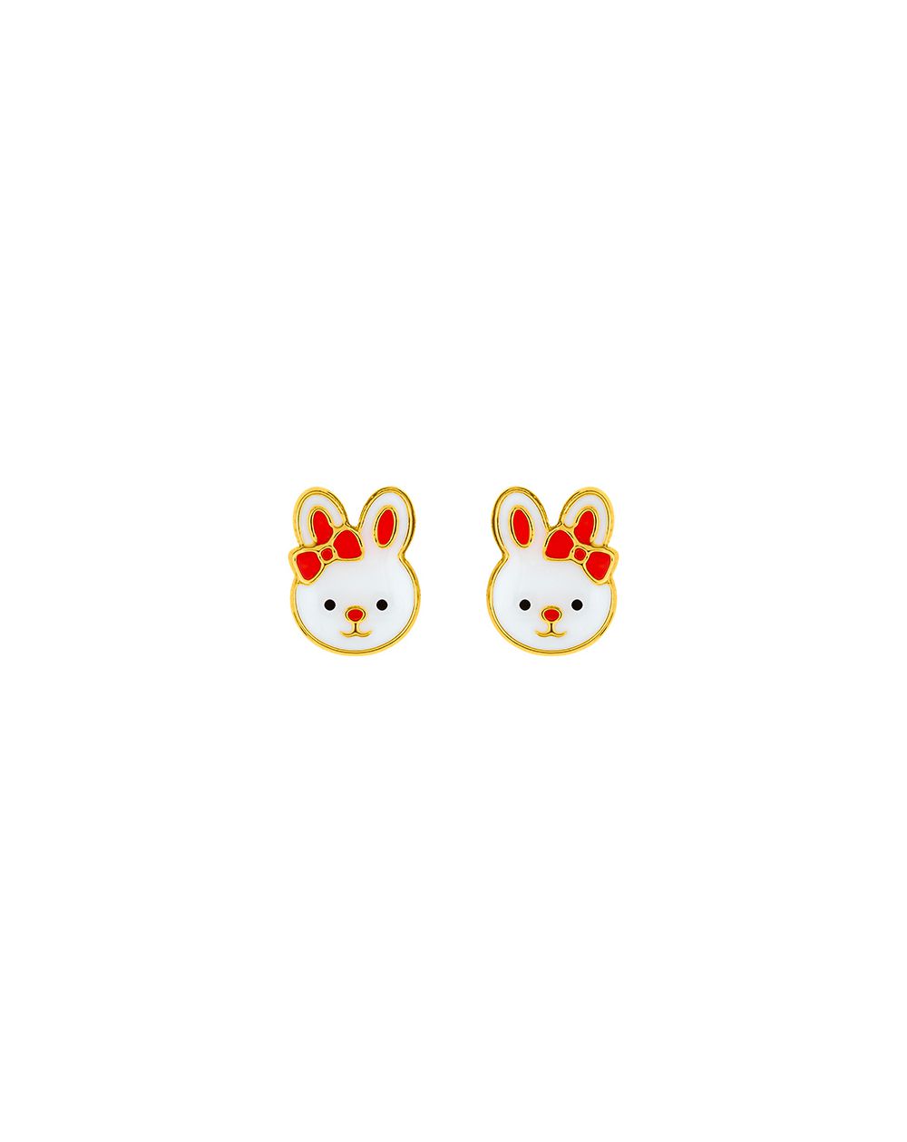Ces boucles d'oreilles en or 9 carats sont des petits perceuses en forme de lapin émaillé.