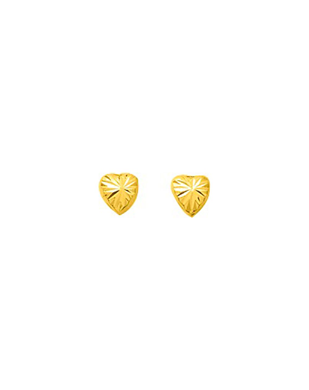 Ces boucles d'oreilles en or 9 carats sont des petits perceuses en forme de coeur strié.
