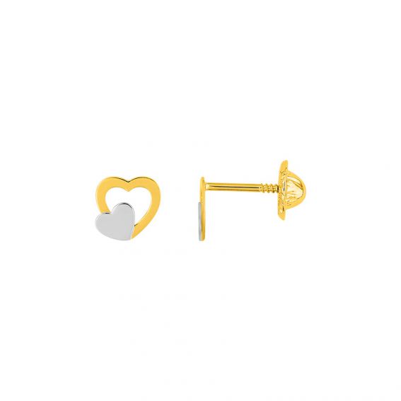 Ces boucles d'oreilles en or 9 carats sont des petits perceuses en forme de double coeur.