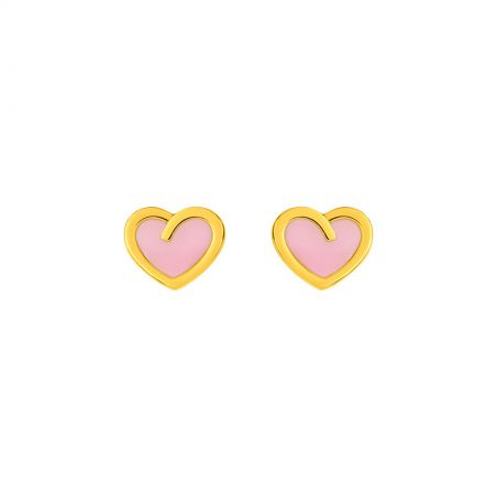 Ces boucles d'oreilles en or 9 carats sont des petits perceuses en forme de coeur émaillé.