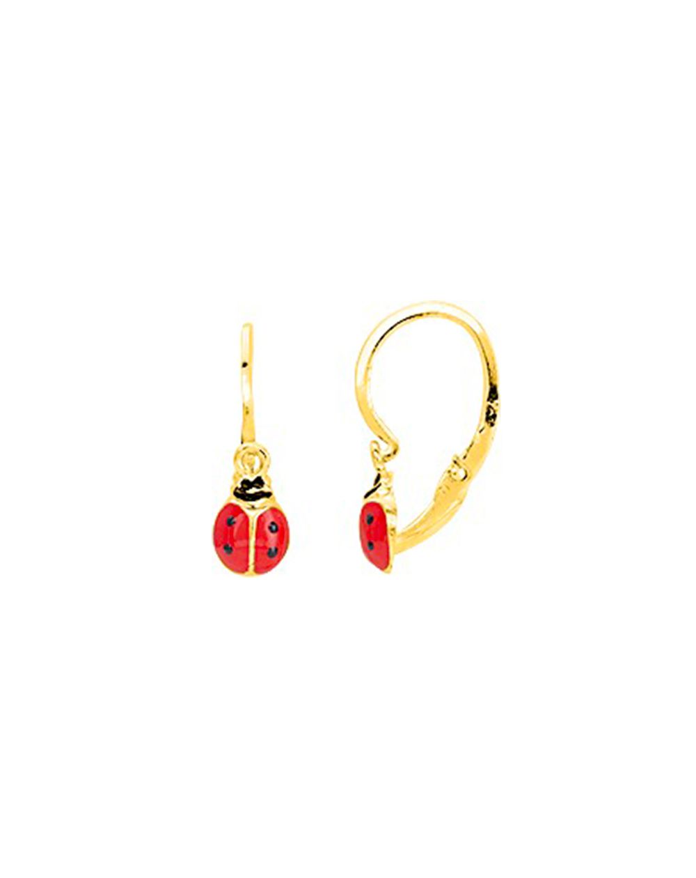 Ces boucles d'oreilles en or 9 carats sont des boucles d'oreilles dormeuses dotées d'une coccinelle émaillée.