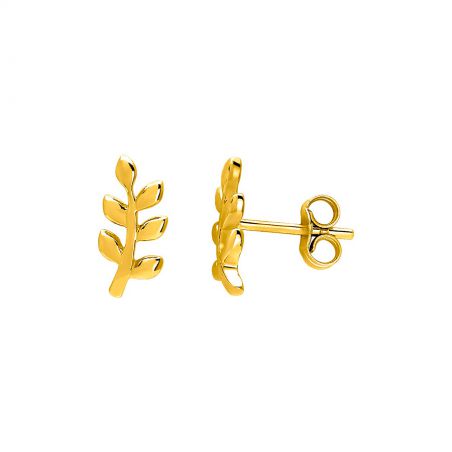 Ces boucles d'oreilles en or 9 carats sont des perceuses en forme de feuilles. Elles se ferment à l'aide d'un papillon.