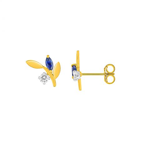 Ces boucles d'oreilles en or 9 carats sont des perceuses en forme de feuilles et serties d'un saphir. Elles mesurent 6mm de diamètre.