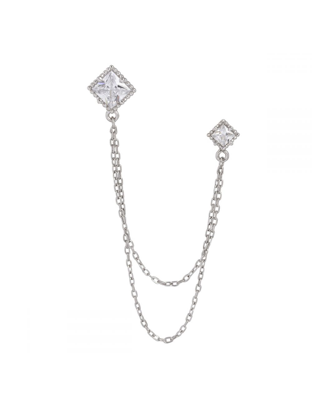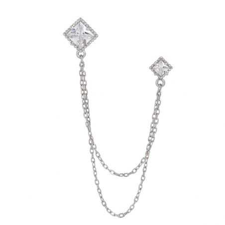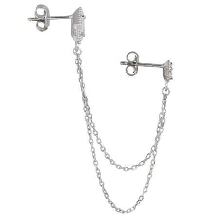 Cette boucle d'oreille est une perceuse double en argent 925 et sertie de pierres en oxyde de zirconium. Les pierres mesurent 7mm et 5mm.