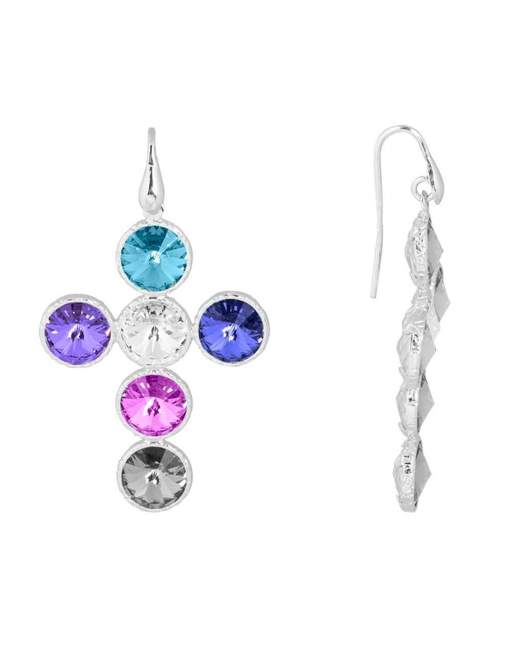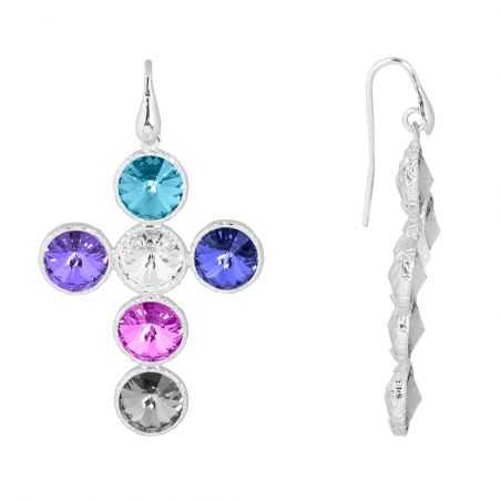 Ces boucles d'oreilles en argent 925 sont des boucles d'oreilles crochets pour femme en forme de croix sertie de pierres multicolores en oxyde de zirconium.