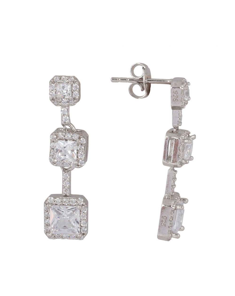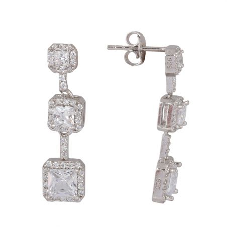 Ces boucles d'oreilles en argent 925 sont des perceuses serties de 3 pierres. Celles-ci mesurent 28mm de haut.