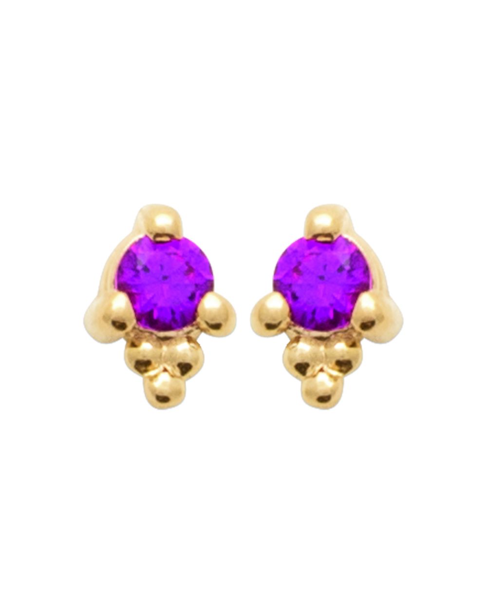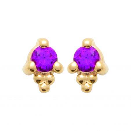 Ces boucles d'oreilles plaquées or 18 carats sont des perceuses serties de pierres colorées.