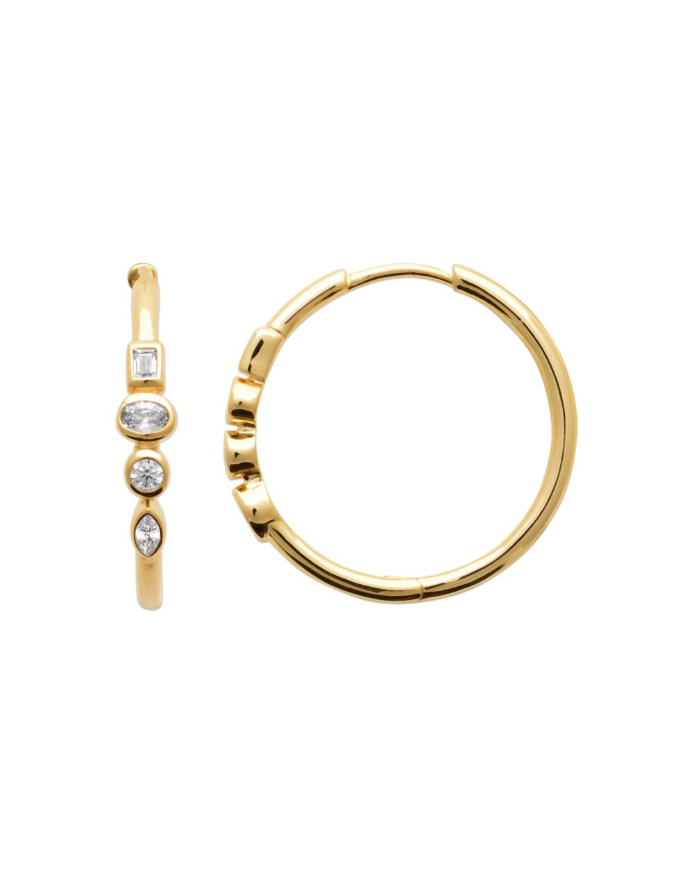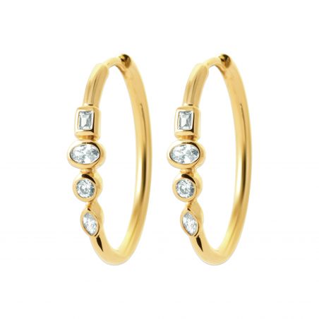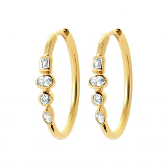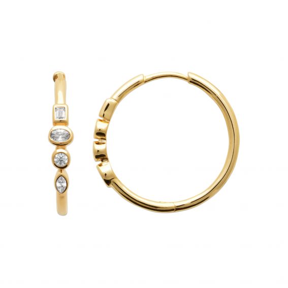 Ces boucles d'oreilles plaquées or 18 carats sont des créoles serties de pierres en oxyde de zirconium.