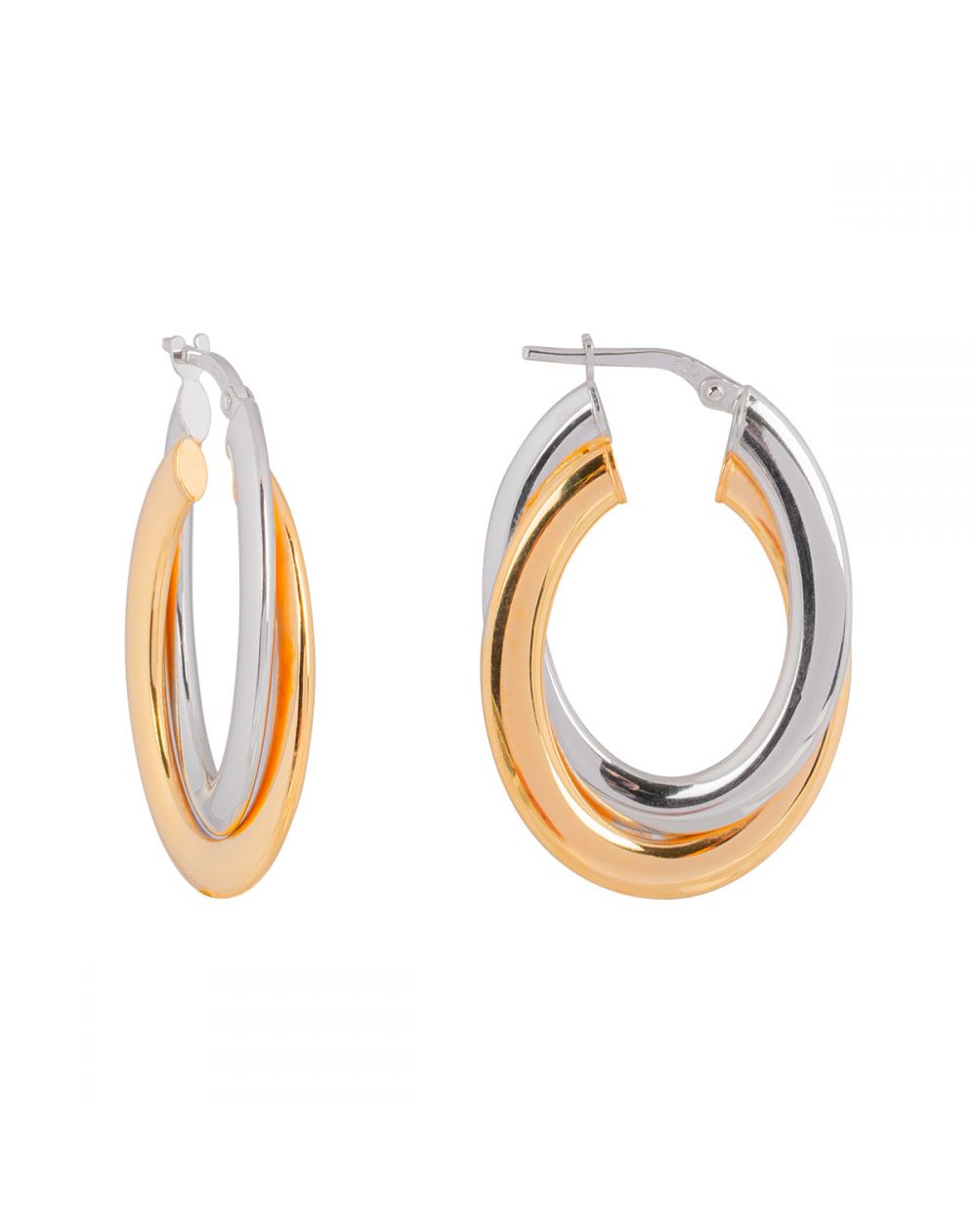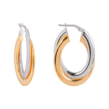 Ces boucles d'oreille en argent 925 sont des créoles bicolores épaisses.