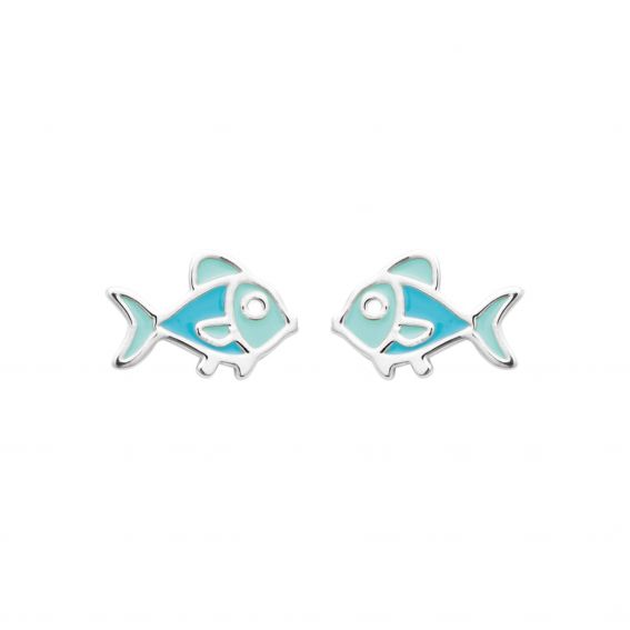 Cette boucle d'oreille en argent925 est une perceuse avec un poisson émaillé bleu