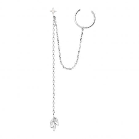 Perceuse zircon et feuilles pendantes double chaines argent 925