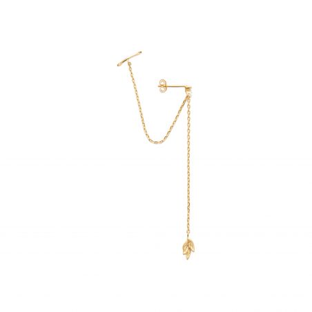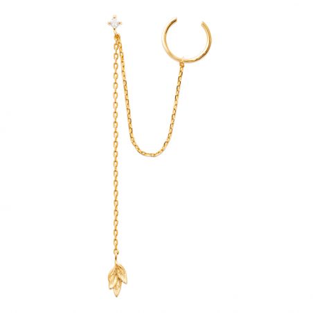 cette boucle d'oreille en plaqué or 18k est une perceuse avec zircon et double chaines pendantes avec 3 feuilles et une bague d oreille, cette boucle d'oreille est vendue à l'unité