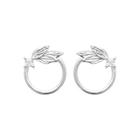 Créole en argent 925, 6 feuilles et 1 pierre