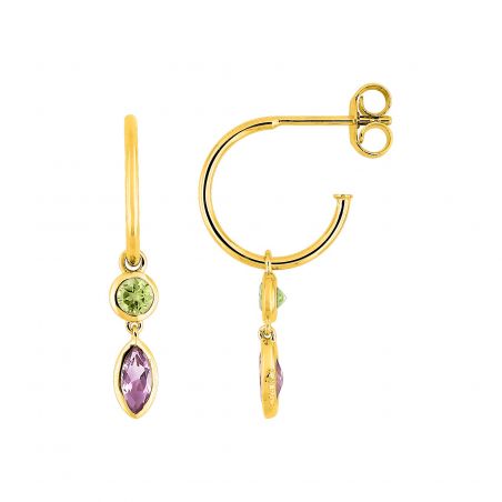 Perceuses créoles 2 pierres or jaune 9 carats