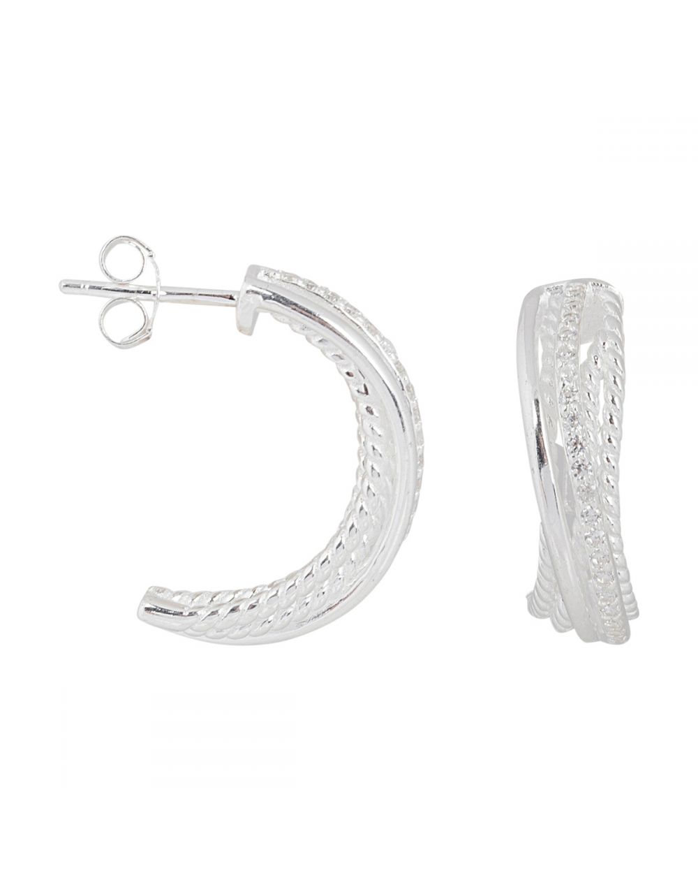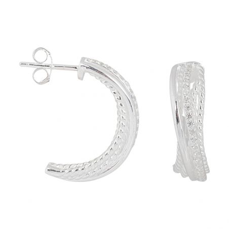 Ces boucles d'oreilles en argent 925 sont des créoles formées de plusieurs lignes dont une est empierrée de pierres en oxyde de zirconium.