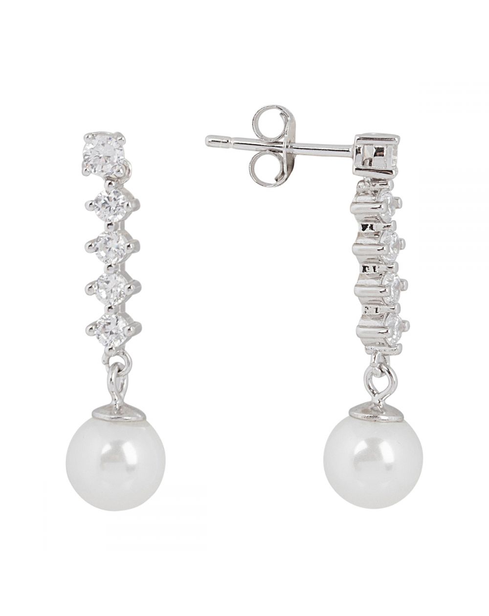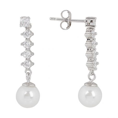 Ces boucles d'oreilles en argent 925 sont des perceuses formées de pierres en oxyde de zirconium et terminées par une perle de 8mm de diamètre.