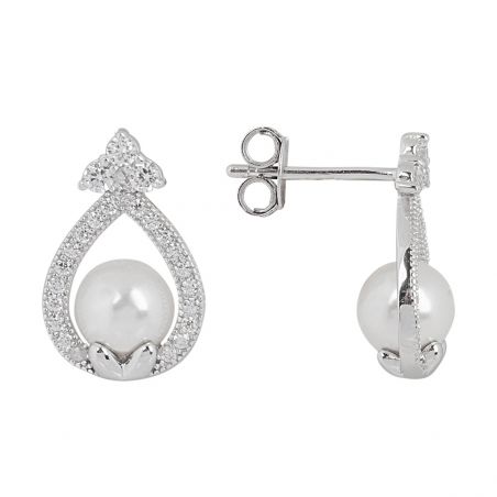 Ces boucles d'oreilles en argent 925 sont des perceuses formées d'une perle de culture et de pierres en oxyde de zirconium.