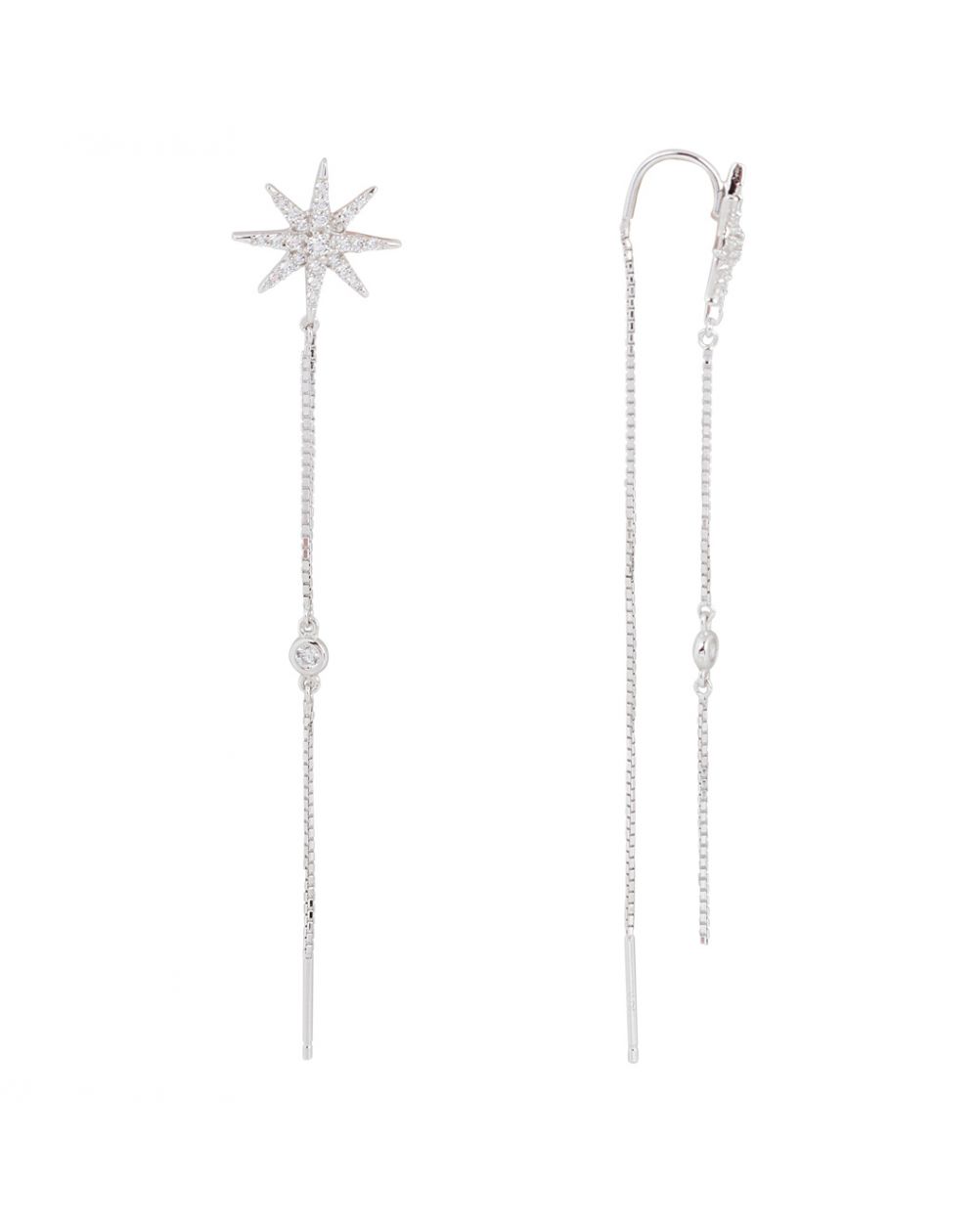 Ces boucles d'oreilles en argent 925 sont formées d'une étoile empierrée sertie de pierres en oxyde de zirconium.