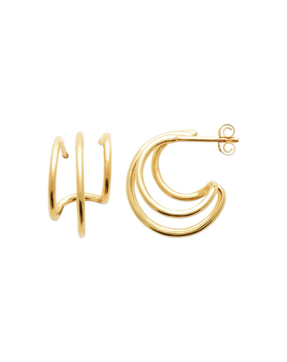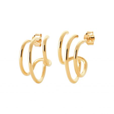 Ces boucles d'oreilles plaquée or 18 carats de haute qualité sont des perceuses dotées de 3 branches. Elles mesurent 16mm de diamètre et 10mm de large.