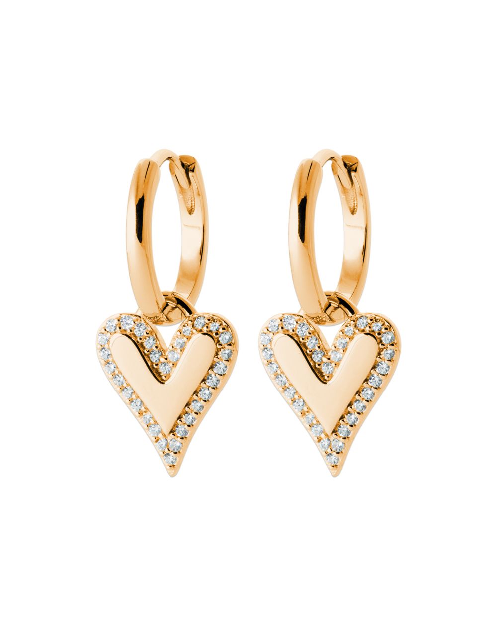 Ces boucles d'oreilles plaquées or 18 carats sont des créoles avec des coeurs allongés