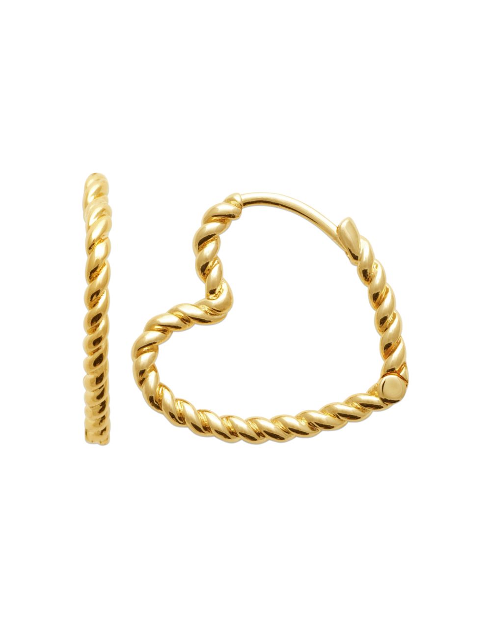 Ces boucles d'oreilles plaquées or 18 carats sont des créoles en forme de coeur.