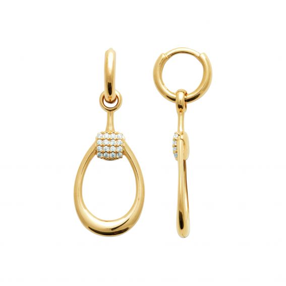 Boucles d'oreilles élégantes plaqué or, avec des pendants ovales lisses et des oxydes de zirconiums incrustés de cristaux scintillants.