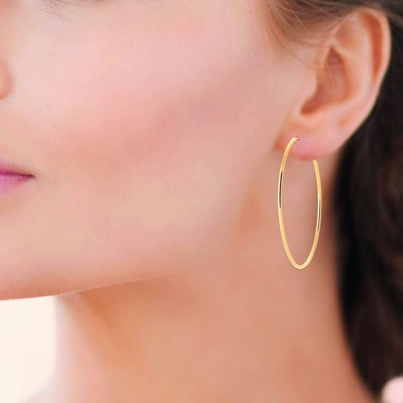 Ces boucles d'oreilles créoles élégantes sont fabriquées en plaqué or 750 avec une épaisseur de placage de 3 microns, garantissant une durabilité et une résistance à l'usure exceptionnelles. Elles présentent un design classique et intemporel, avec un diamètre de 60mm, parfait pour ajouter une touche sophistiquée à n'importe quelle tenue.