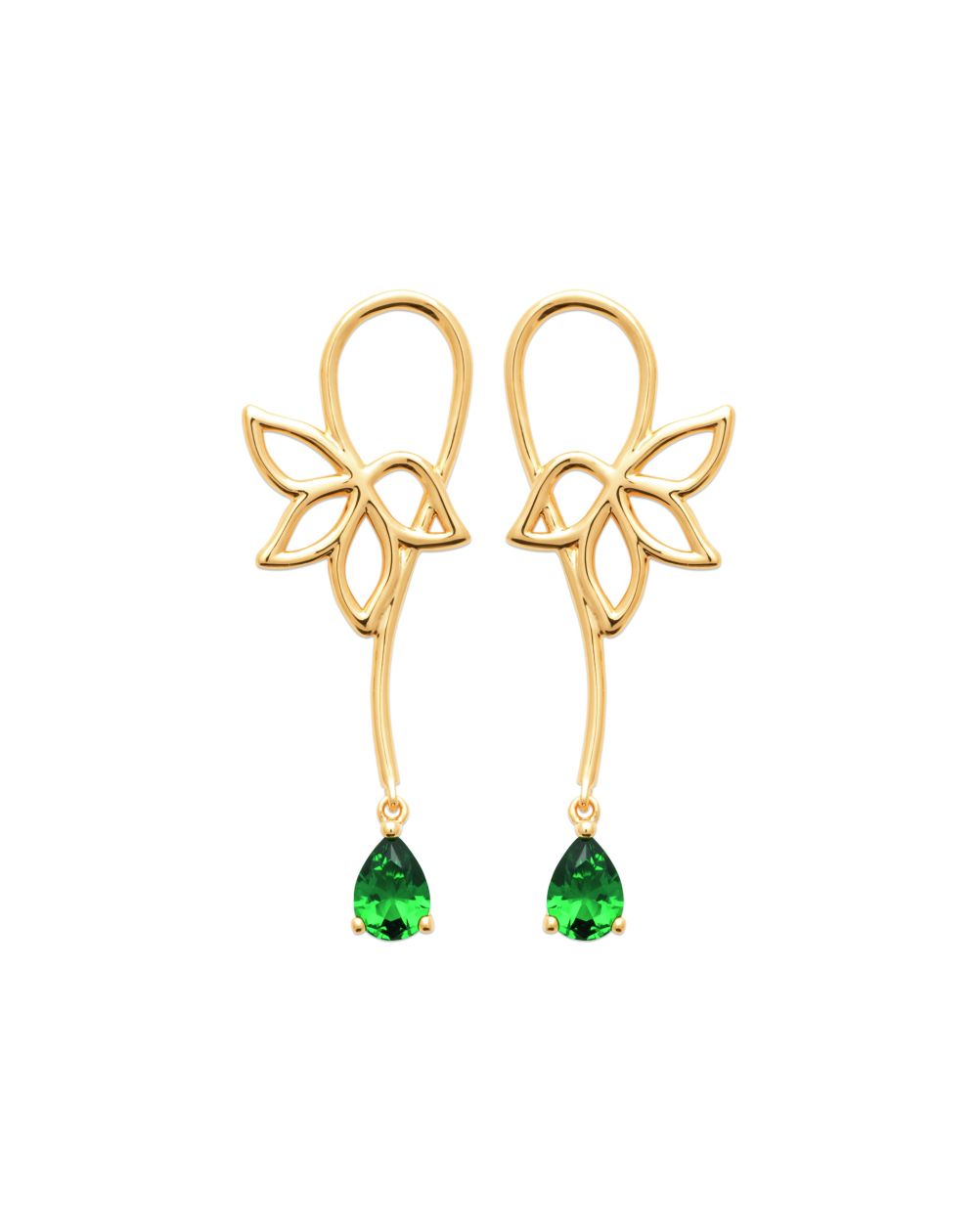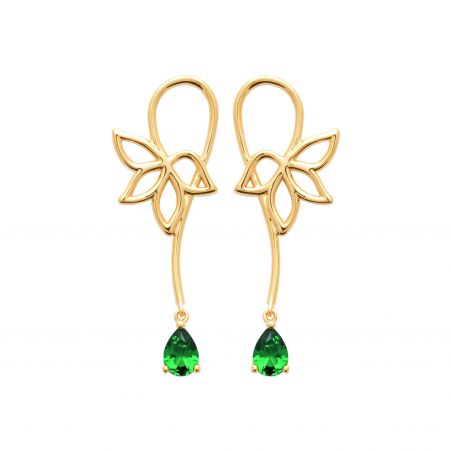 Ces boucles d'oreilles en plaqué or incarnent l'élégance et la nature avec un design raffiné. Chaque boucle d'oreille présente un motif de feuille délicatement stylisé, agrémenté d'une pierre verte en forme de goutte qui pend gracieusement. La couleur éclatante de la pierre verte ajoute une touche de fraîcheur et de sophistication, tandis que la structure dorée apporte une chaleur et une élégance intemporelle.