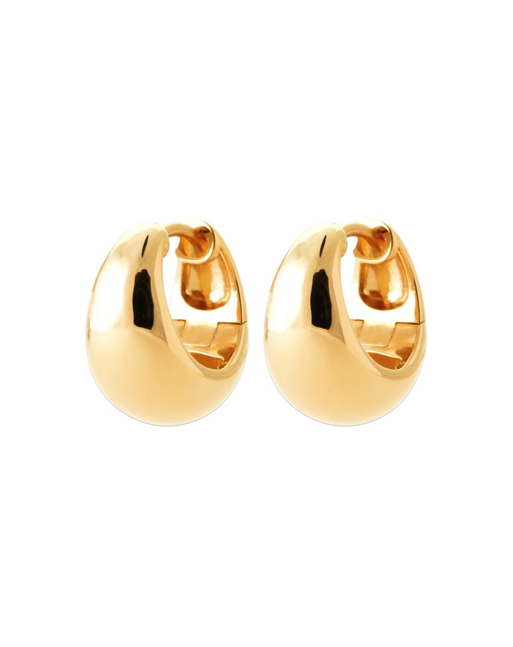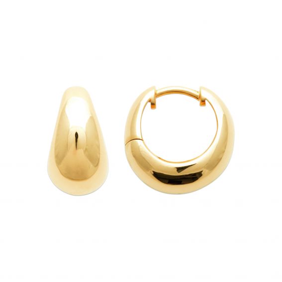 Ces boucles d'oreilles sont des créoles en plaqué or 18 carats, au design classique et épuré. Elles présentent une forme arrondie et bombée, créant un look à la fois chic et moderne. Le plaqué or leur donne une finition lisse et brillante, ce qui leur permet de capter la lumière et de refléter une lueur dorée chaude. Ces boucles d'oreilles sont idéales pour un usage quotidien ou pour compléter une tenue plus sophistiquée, apportant une touche de luxe discrète mais élégante. Leur design simple et intemporel en fait un accessoire polyvalent et raffiné.