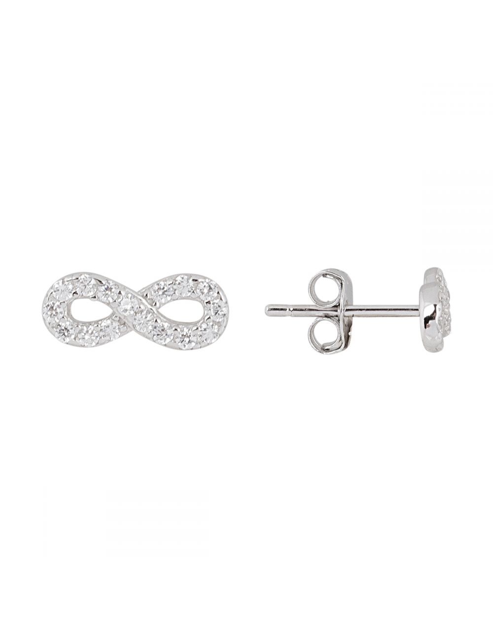 Ces boucles d'oreilles en argent 925 sont des perceuses en forme d'infini empierré (pierres en oxyde de zirconium).