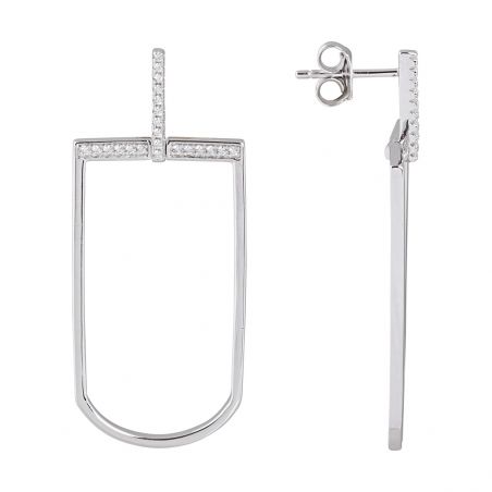Ces boucles d'oreilles en argent 925 sont des boucles d'oreilles en forme de barrette serties de pierres en oxyde de zirconium.