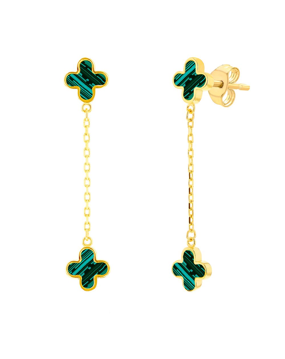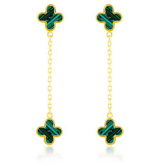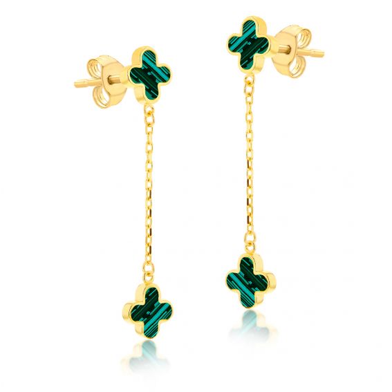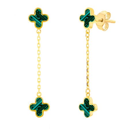 Bijoux or et personnalisé Boucles d’oreilles pendantes trèfle cleef malachite or jaune 9 carats