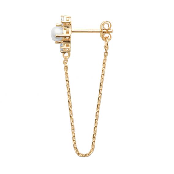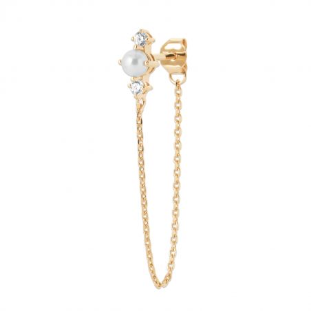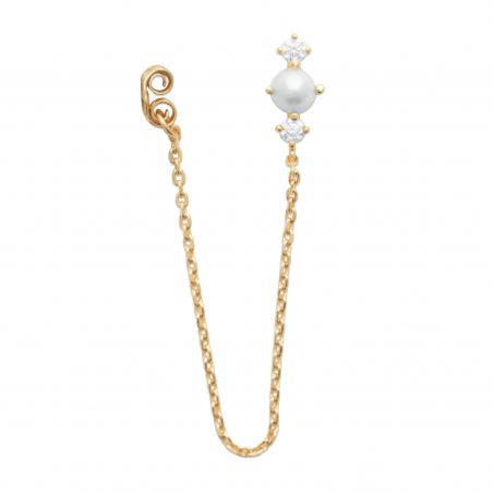 Ce clou d'oreille perle est une boucle d'oreille vendue à l'unite et sertie d'une perle et de pierres en oxyde de zirconium. Celle-ci est en plaqué or 18 carats.